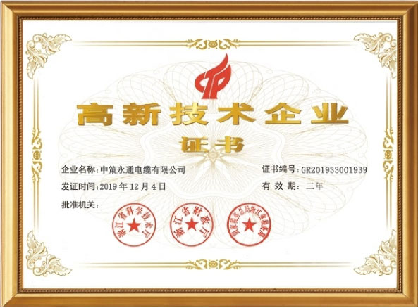 公司為浙江省電線電纜行業品牌10強,中國民營企業電線電纜100強品牌,并獲得國家專精特新小巨人企業、國家高新技術企業、省科技型中小企業、省專精特新中小企業、區政府質量獎、浙江制造“品”字標認證等多項榮譽。中策永通電纜有限公司生產設備精湛,技術力量雄厚,加工工藝先進,檢測工序齊全,質量體系完善,售后服務周到。以專業和品質為客戶提供優質的產品與服務,不斷在產品多元化、效益規模化、技術高新化、體制現代化中求突破,繼續擴大和保持在電線電纜領域的引領地位。